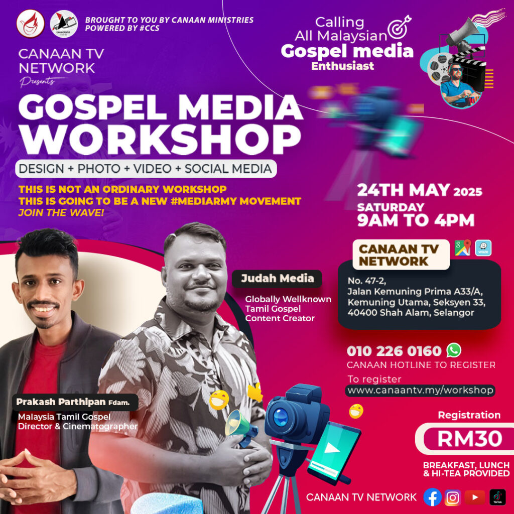 Join us for the Gospel Media Workshop, a one-of-a-kind training experience focused on Design, Photography, Videography, and Social Media — all tailored for gospel impact. This is not just a workshop; it’s the launch of a fresh #MediaArmy movement!